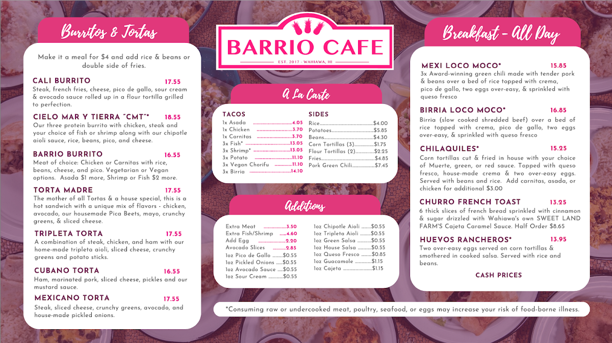 Add chicken, carnitas, or asada for $3.50